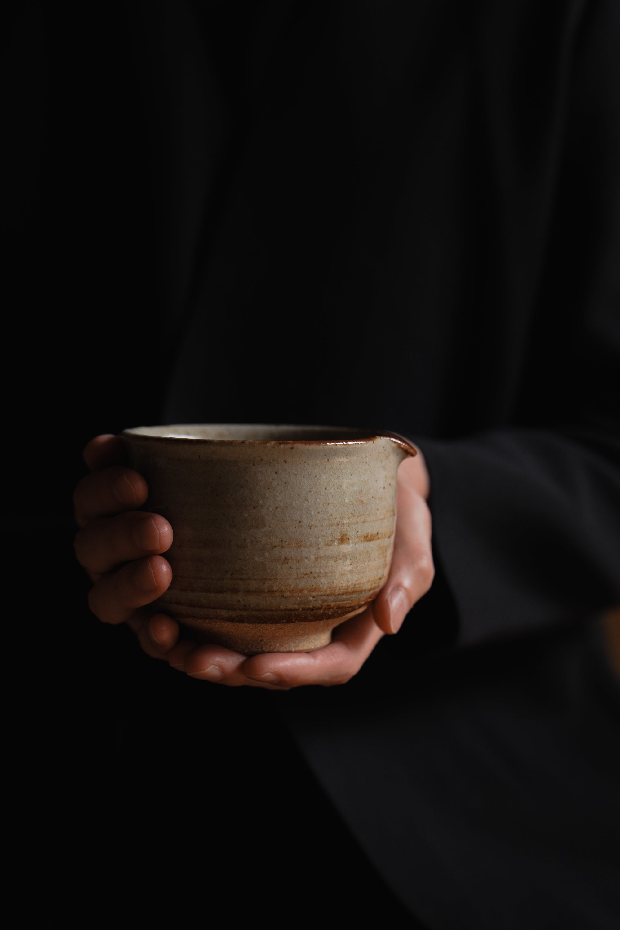 両手にすっぽり収まるかたちのその器は、抹茶碗としても、片口茶碗としても使える2way。実用の器でありながら、手のひらにおさまる愛らしさの中に、自宅で静かに抹茶ラテをたしなむひとときや、静かな茶室の趣を思わせる詩情をたたえています。